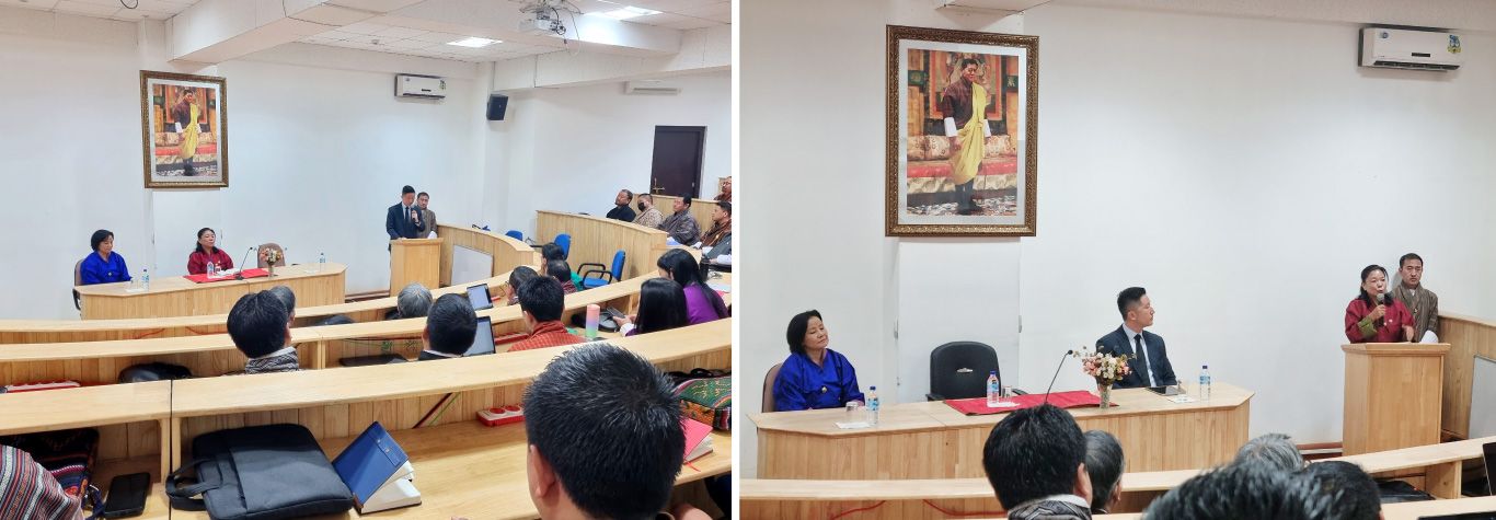 Mr Ho Wei Jiang (left), Dean of the Chandler Academy of Governance, and Dasho Tashi Pem (right), Chairperson of the RCSC, deliver opening remarks at the launch of the LCSP